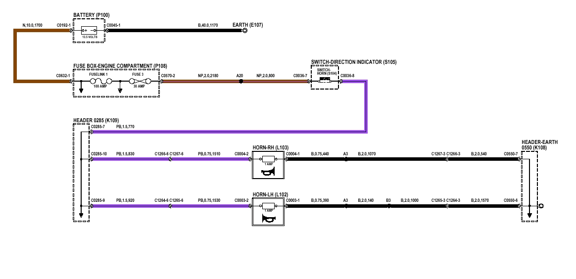 Pour info, ton schéma semble être celui de mon montage pour le klaxon ajouté : la commande se fait via celle du klaxon d'origine, qui commande un relais (avec un fusible de 15 Amp), lequel est alimenté par un fil pris au niveau des fusibles du boitier central derrière le levier de vitesses. je revois le montage et je te fais un schéma dans la semaine.