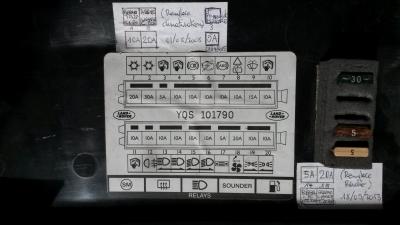 Pas très exploitable ta photo, tu as la possibilité de placer des photos jusqu’à 1Mo et tu nous mets une pauvre photo qui fait à peine 15Ko. Cela donne a l'echelle de l'autre, une toute petite vignette en bas à droite. Mais cela m'a permis d'identifier ton tableau de fusible, mais également de constater qu'il y avait une incompatibilité, entre la numérotation des fusibles du tableau sur les pictogrammes du couvercle du boitier de fusible et la numérotation des fusibles du le schéma du tableau de fusible. Après vérification, ce n'est pas le cas sur les schémas du 300Tdi, ni sur les schémas du Td5 d'après 2002, où là, il y a bien correspondance entre la numérotation des schémas et celle des étiquettes des boites à fusibles.