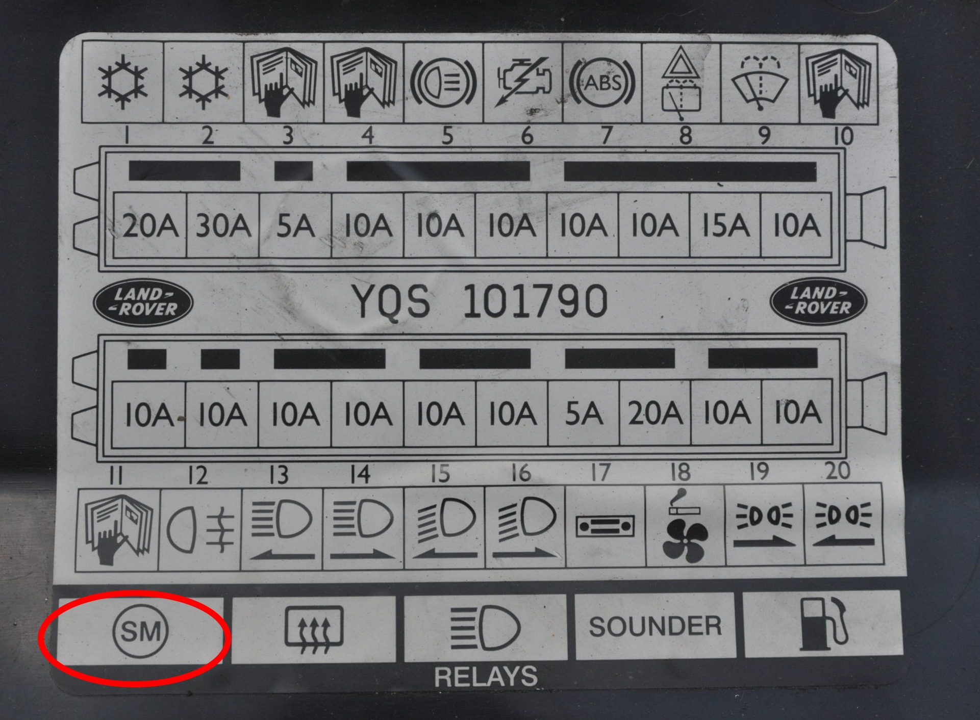 A moins que ton tableau de fusibles soit avec une barrette de fusible satellite supplémentaire, comme si cela ne suffisait pas, dans ce cas le relais SM est en quatrième position en partant de la droite.
