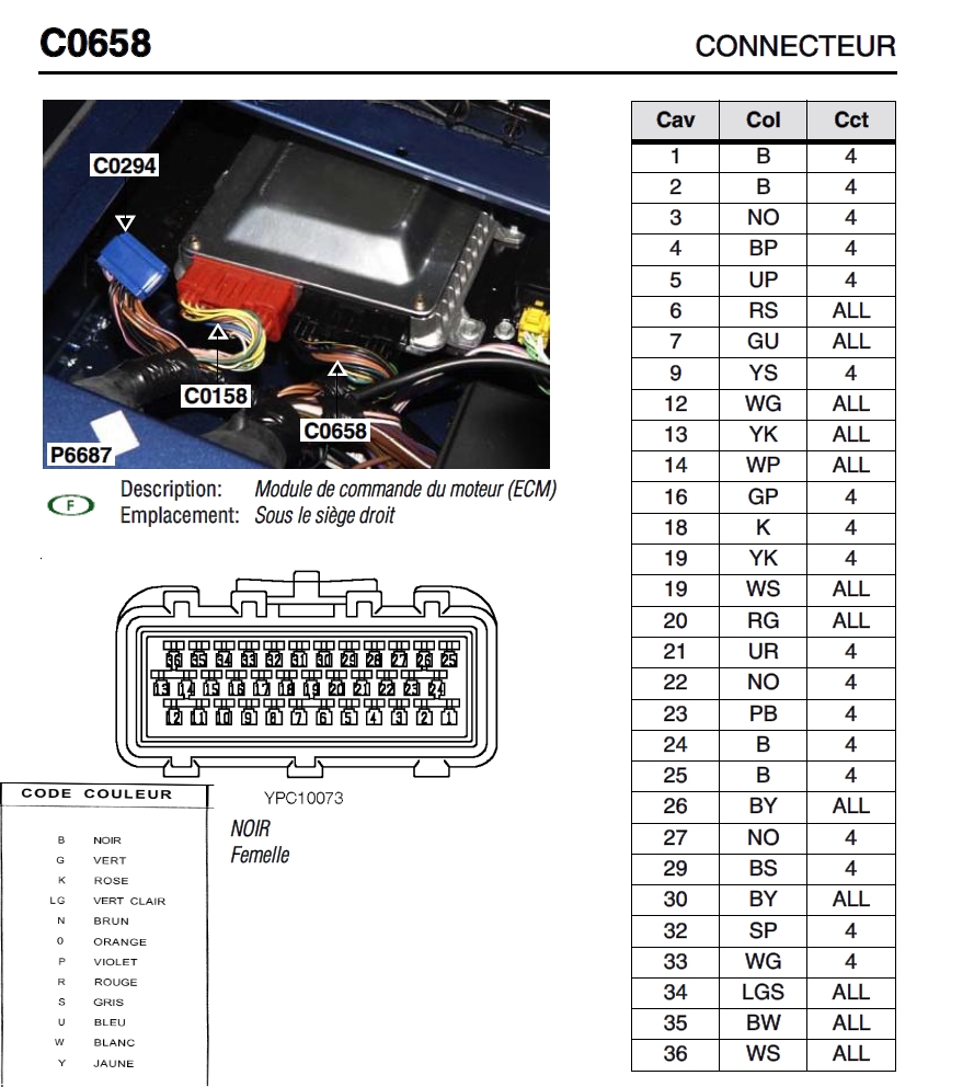 Sur les schémas, si tu repères les broches de C0658 tu vois que ces fils vert partent des broches: 7; 16; 34.