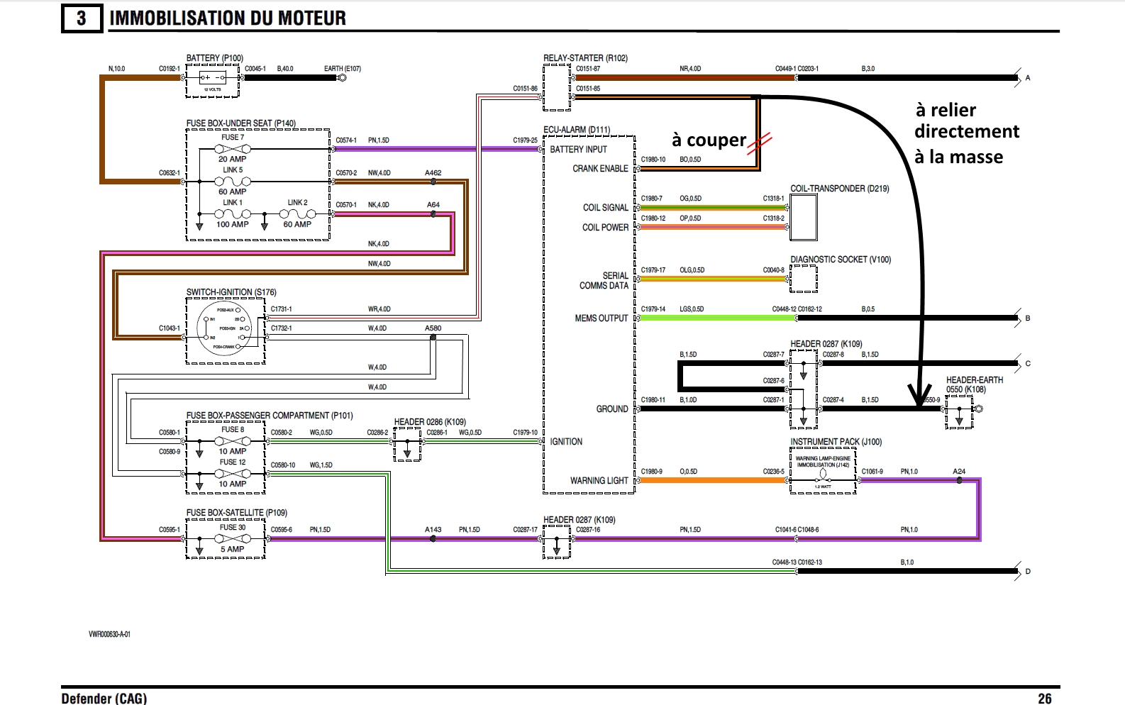 Voir les thèmes : Suppression alarme-coupe-circuit def 110 300TDi et Disco 300tdi s'arrête en roulant et ne démarre plus pour illustrer ces deux premiers points.