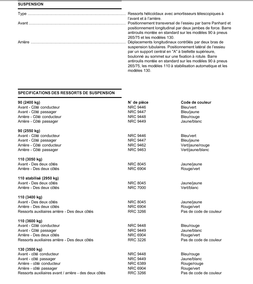 Pour commencer, tu devrais déjà regarder dans quel état sont tes ressorts arrière (corrosion), et s'ils ont un marquage d'identification (bandes colorées peintes au pinceau), pour vérifier de quel modèle de ressort il s'agit
