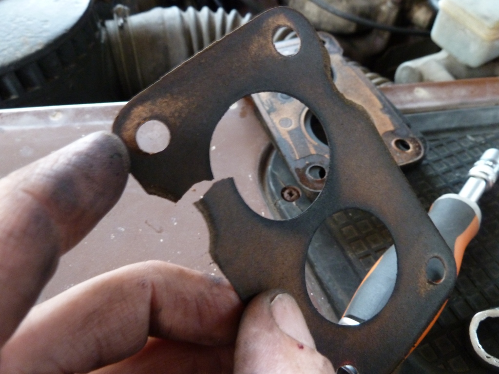 J'ai déposé la gaine qui relie le carbu au filtre à air et là, drôle de bruit de succion un peu comme quand on finit son verre à la paille. Je dépose donc le cache sur le dessus du carburateur pour aller un peu plus loin dans l'investigation.
