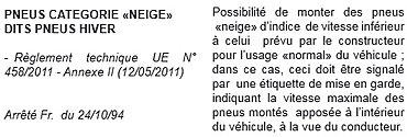 En ajoutant, puisque le sujet est abordé, que le marquage flocon sur un pneu n'a de valeur technique que pour les pneus à usage routier dans les dimensions usuelles des pneus de berline.