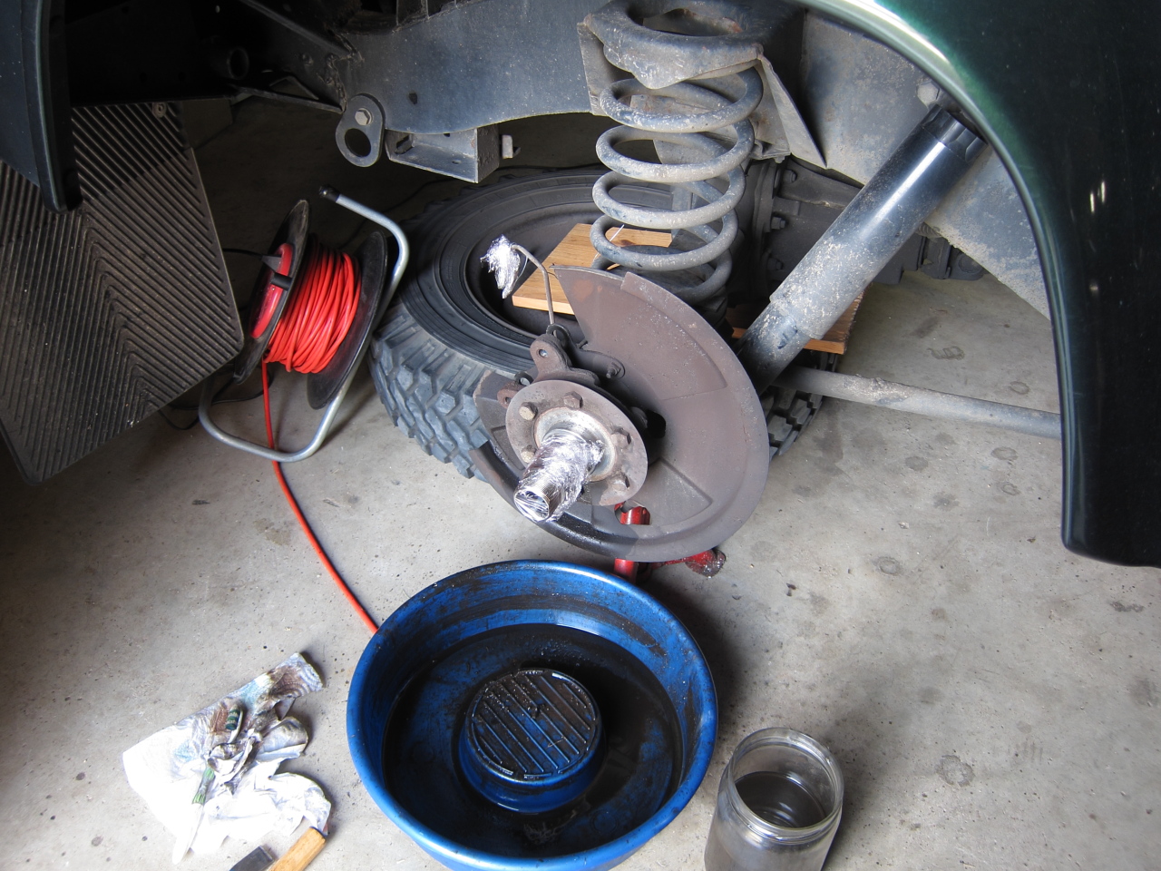 A l'arrière, de l'huile de pont a coulé quand j'ai sortie l'arbre/main meneuse mais très peu, la graisse était plus fluide mais abondante.=> je vais déposer les fusées pour remplacer les spis d'arbres(commande supplémentaire avec les roulements)