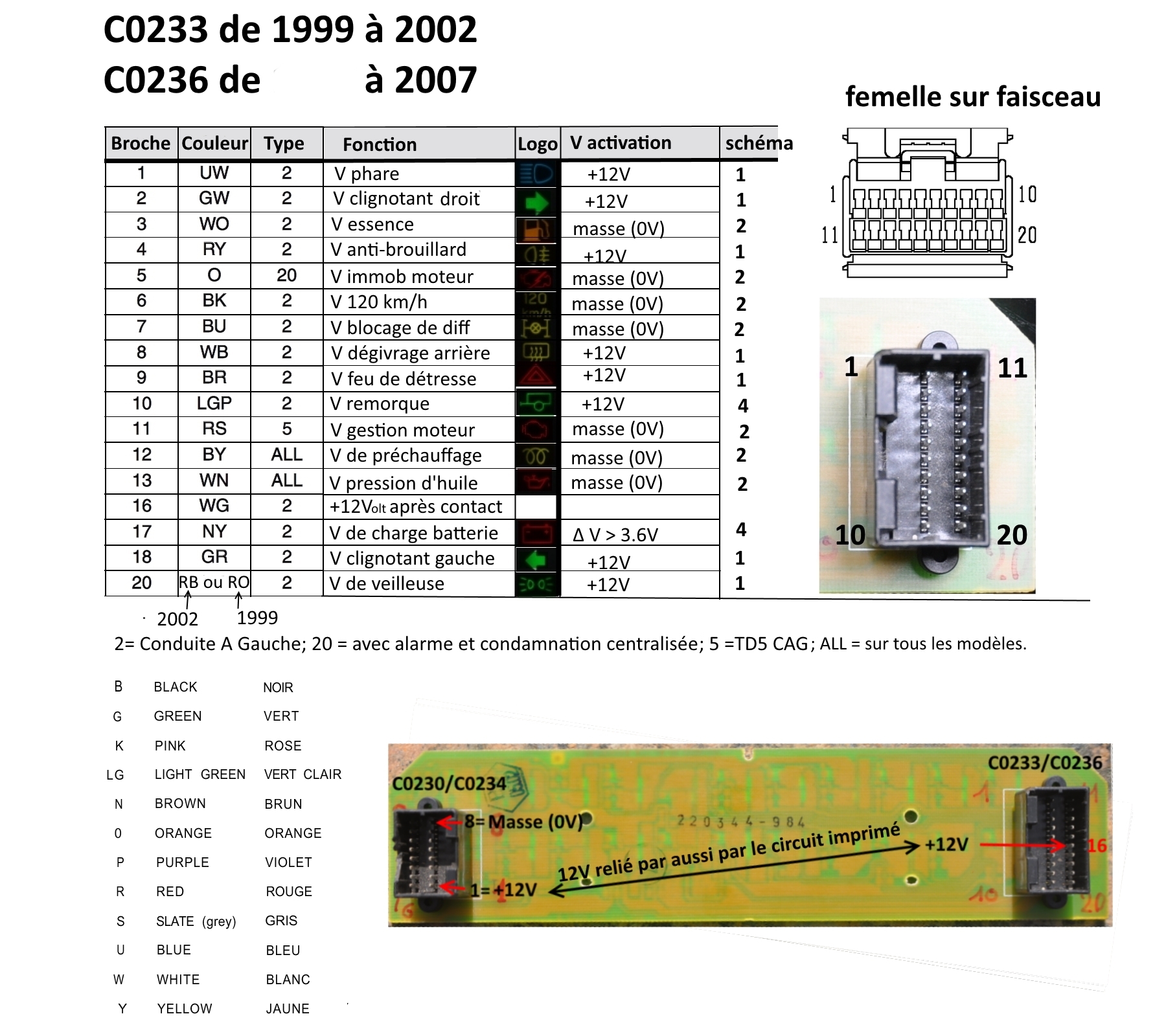 Blanc/vert????LandLover110 a écrit : j'ai tenté la même chose en commençant par le fil blanc/vert, puis le fil blanc : idem ... (un essai avec la clé en position II a donné une étincelle en retirant le fil blanc).