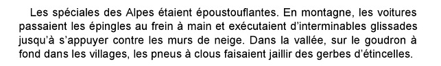 Ce que je veux dire, c'est que l'on (l'habitant de zone tempérée) a un instinct extrêmement conservateur dès qu'on met les pieds sur glace, et on a du mal à voir à quel point on peut rouler "presque" normalement avec ces outils, sur route verglacée. A l'inverse, sur route sèche on a pris des habitudes de vitesse et de distances de freinage que les pneus cloutés ne permettent pas.