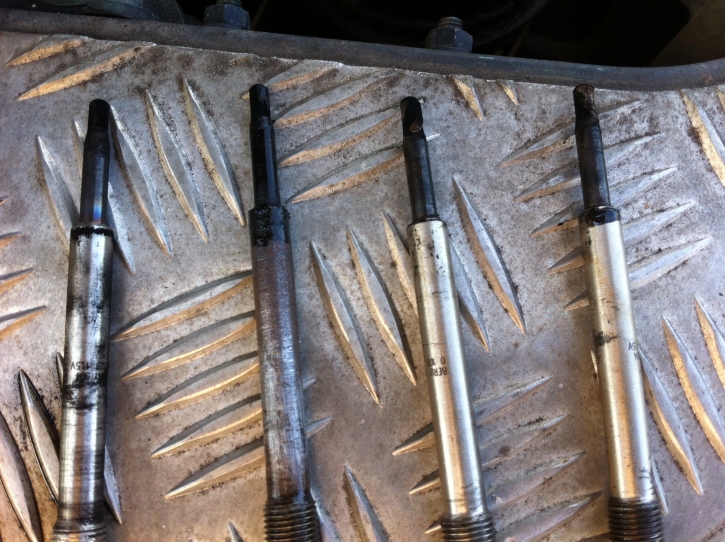 En partant de la droite: cylindre proche du tablier. la bougie a eu du mal a sortir....pleine de calamine et sèche