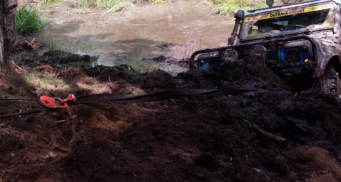 Si le crochet est ramené vers l'arrière sans la corde, il ne sera plus possible d'amener le crochet vers l'avant sans passer sous le véhicule (ce qui pose problème s'il y a de la boue jusqu'aux portes).