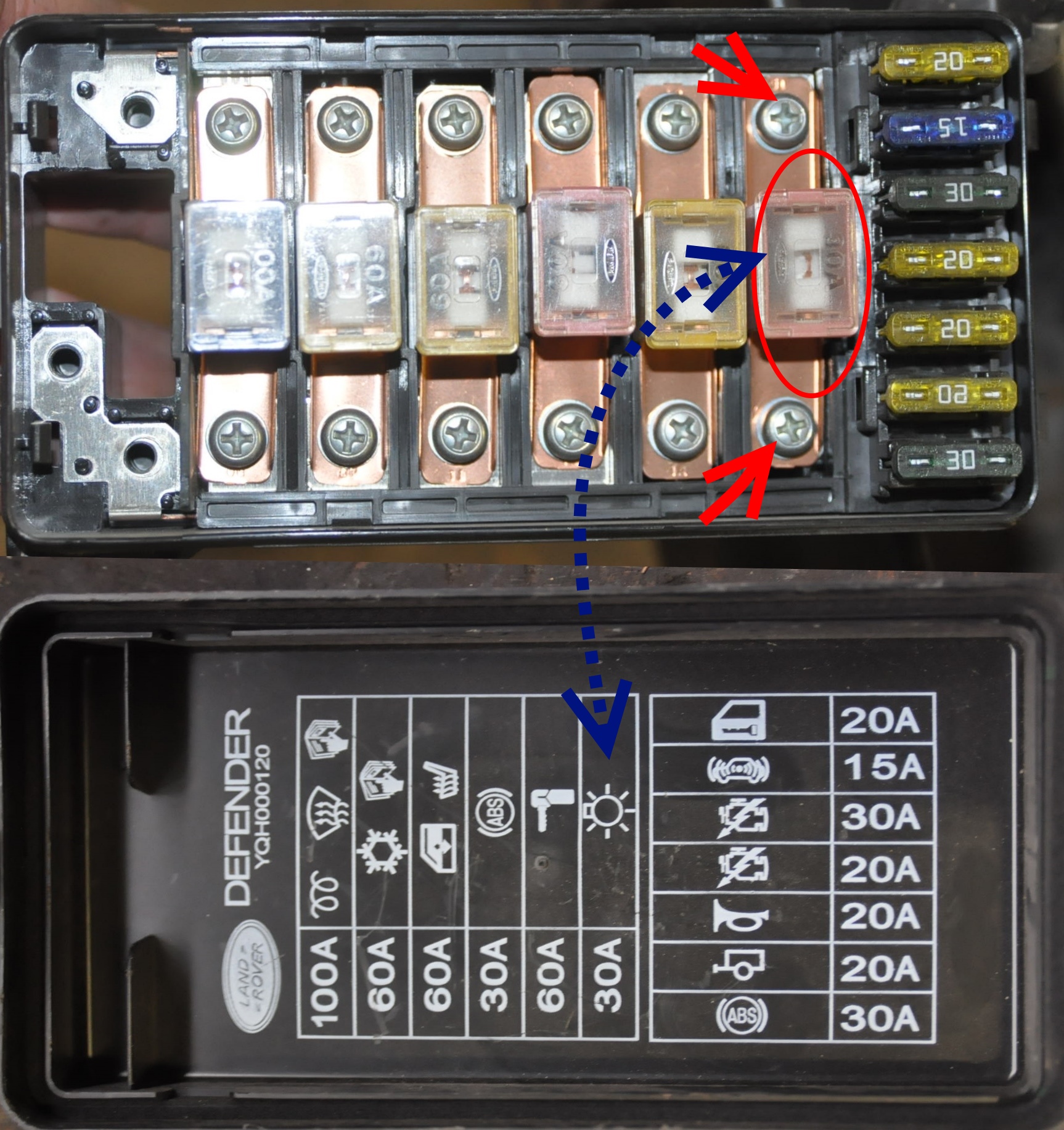 Non, il y aurait plutôt un problème d'oxydation ou de vis desserrées dans le porte fusible de puissance, sur le "fuselink" N°6 de 30A, ou de l'oxydation.