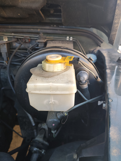 Test "Petit test : le matin le véhicule bien froid, met le pied sur le frein et appuies. Mets le moteur en route : la pédale doit bien s'enfoncer et pas qu'un chouilla.'" et la pédale s'enfonce d'un chouilla.