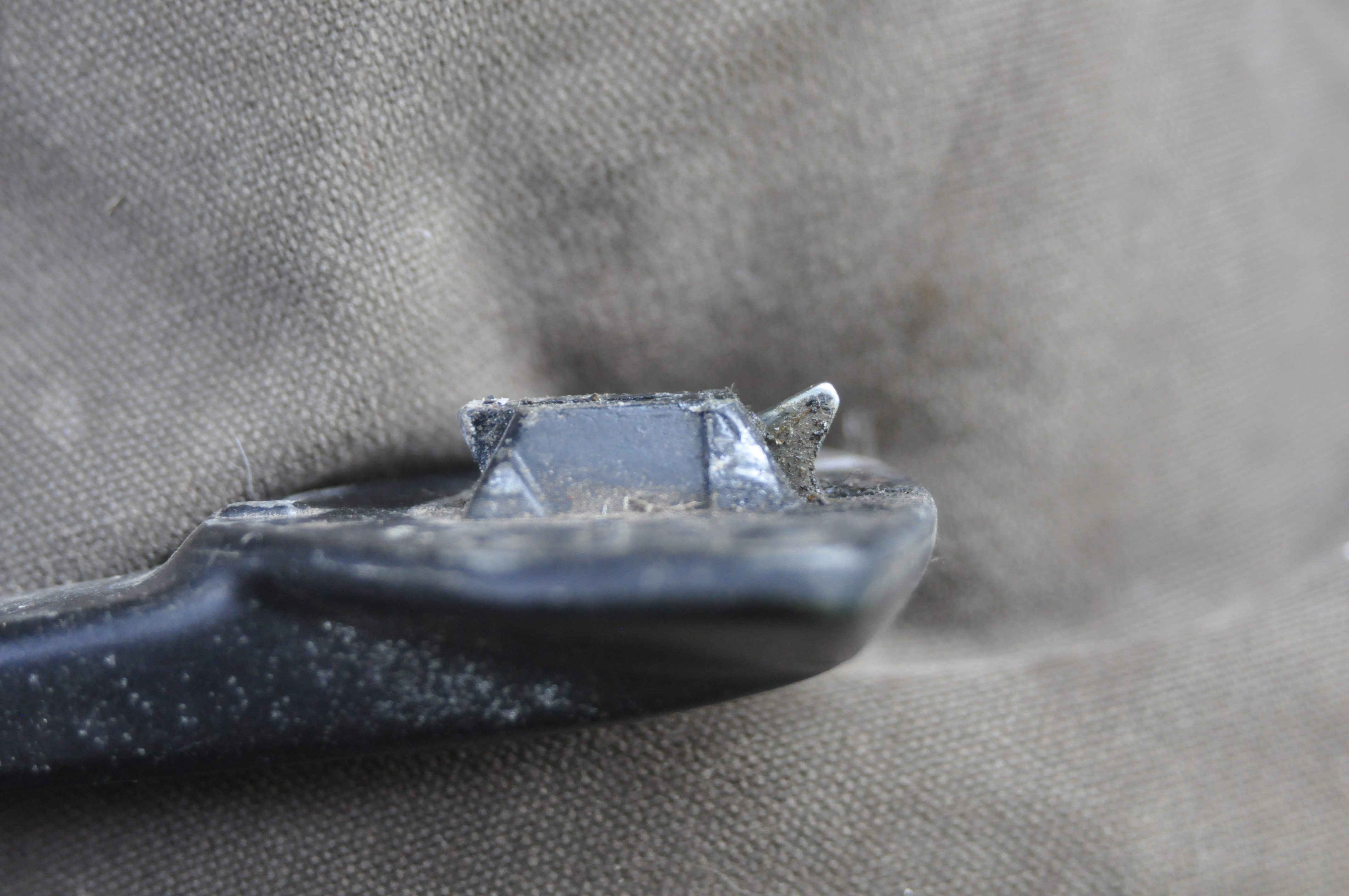 1) Sont profilé trapézoïdale Inca: 2) Un ergot de verrouillage monté sur un puissant ressort, dont-il faudra compenser la force de verrouillage comme expliqué plus loin: Plus loin ? On y est déjà, et oui les distances paraissent toujours trop courtes, en Land