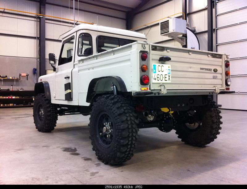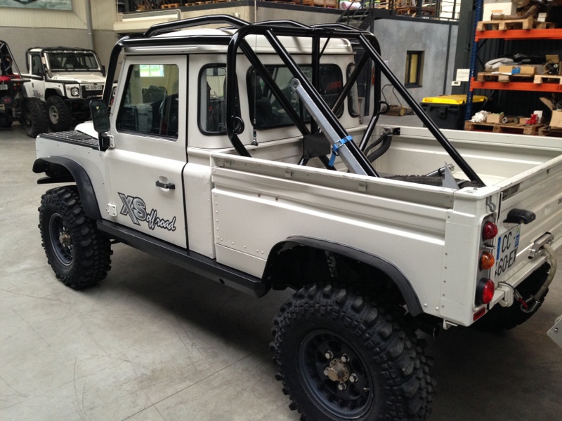 Sur Pirate 4x4 la préparation d'un DEF 110 HCPU raccourci montre une simple bande de caoutchouc rigide (avant et arrière) :