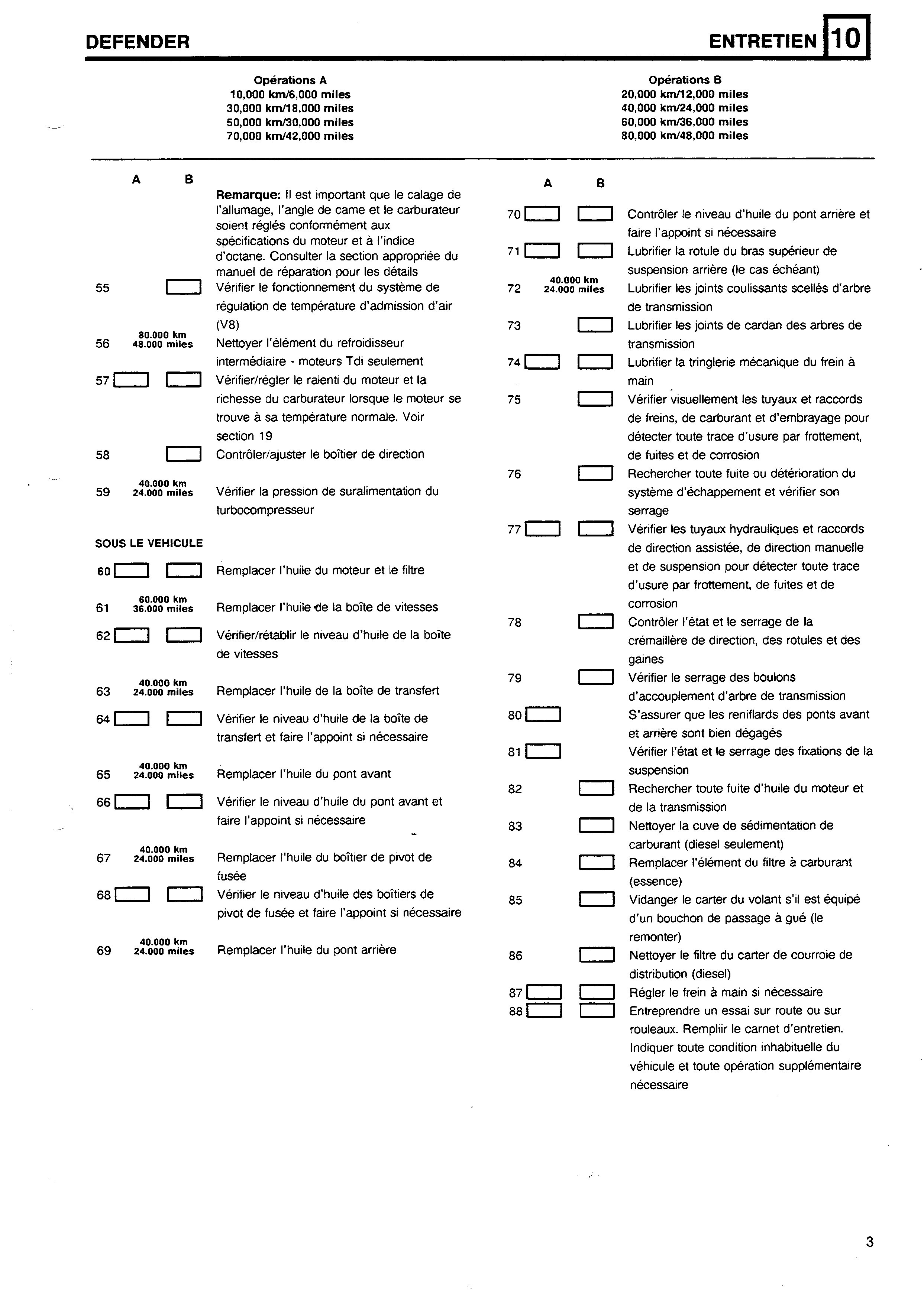 Composants sous le capot, certes pour un defender, mais hormis la forme du filtre à air le reste est pareil sur le D**co ou R**ge 300tdi Les lubrifiants préconisés par le constructeur : Les quantités : La périodicité :