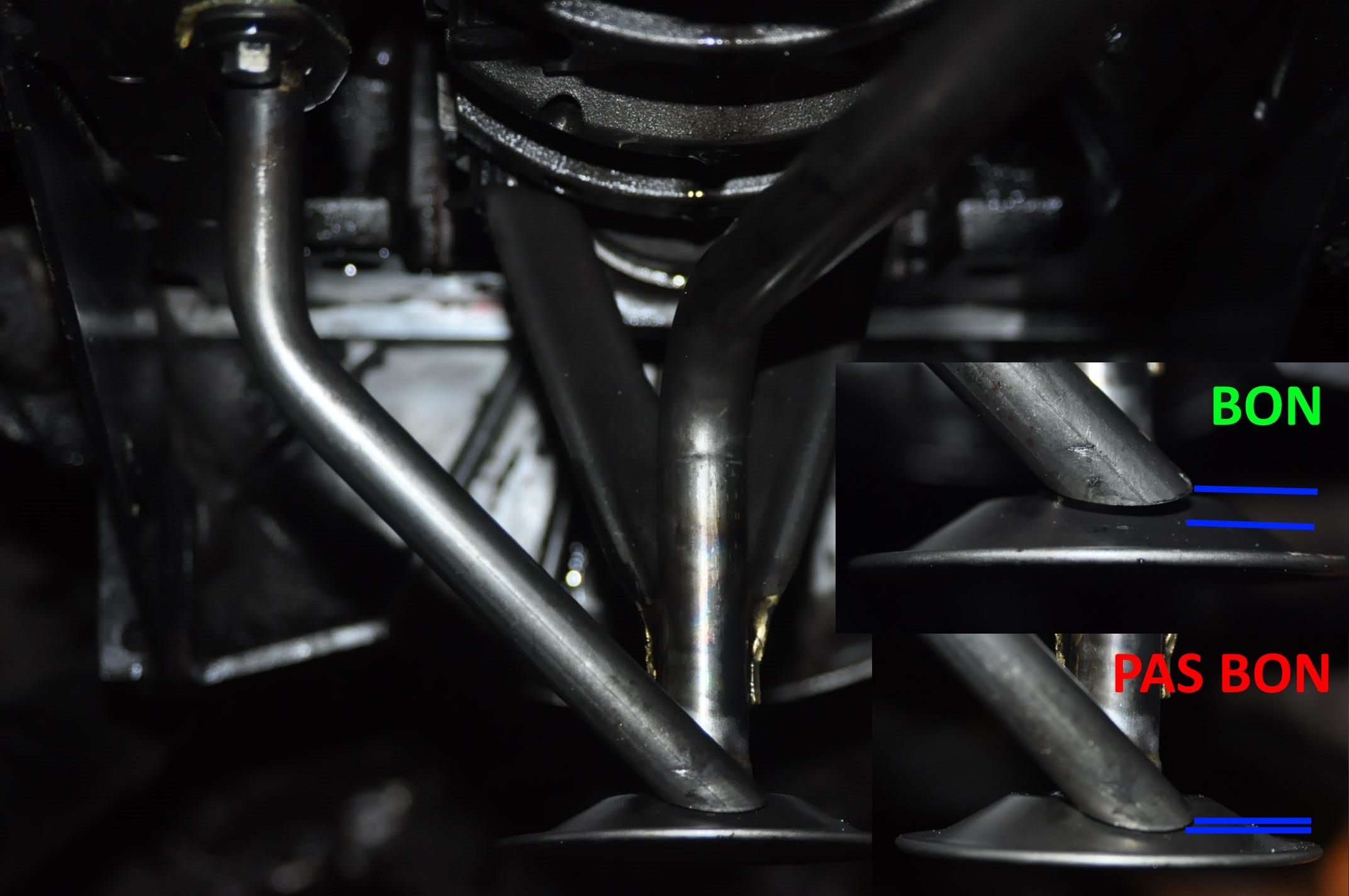 A chaque extrémité du tube, il y a une brasure qui peut-être défectueuse et générer une prise d'air aussi. Bien que je pense que celle du bas a priori, doit tremper dans l'huile.