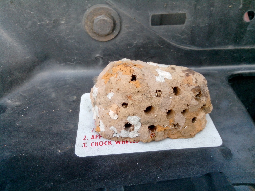 A cause des petits trous, j'opterai pour un nid de guêpe maçonne.