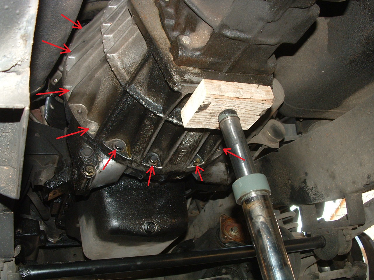 il faut déposer la traverse et basculer l'ensemble moteur / boites vers l'arrière (jusqu'à ce que la culasse bute contre le tablier) pour accéder aux vis du haut en s'aidant d'une rallonge et d'un cardan...