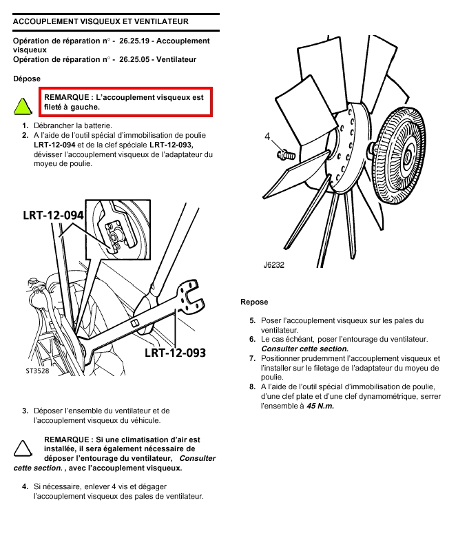 L' opération à été effectué sans manuel d'atelier, donc la chronologie n'est pas forcement identique à celle proposé par LR dans son manuel. Certaine opérations de pré-démontage ou de finition ne sont pas abordées, car soit très bien développées précédemment par mes paires de la faq ou un peu honteuse, comme démonter un viscocoupleur en deux coup de marteau burin bien placé. Le train est donc pris en route, batterie débranchée...