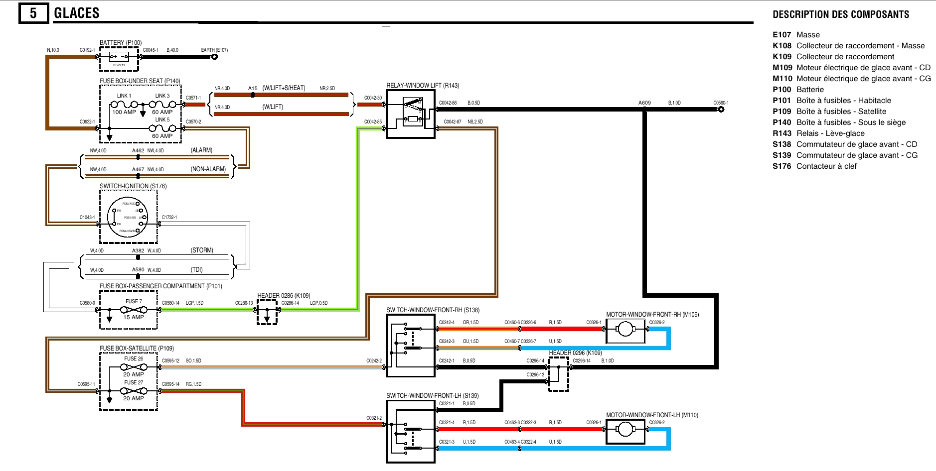 Afin de partir sur des bases saine, on va s'armer d'un schéma.Si le coté droit fonctionne, pour moi ce n'est pas le relais car sinon dans ce cas les vitres des deux cotés ne fonctionneraient pas.