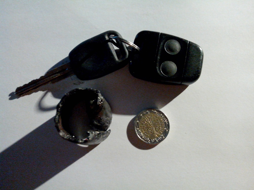 Si oui, vue les boursouflures sur l'un des cotè cela a dut bien chauffer. Ce qui expliquerait le marteau burin pour son extraction...