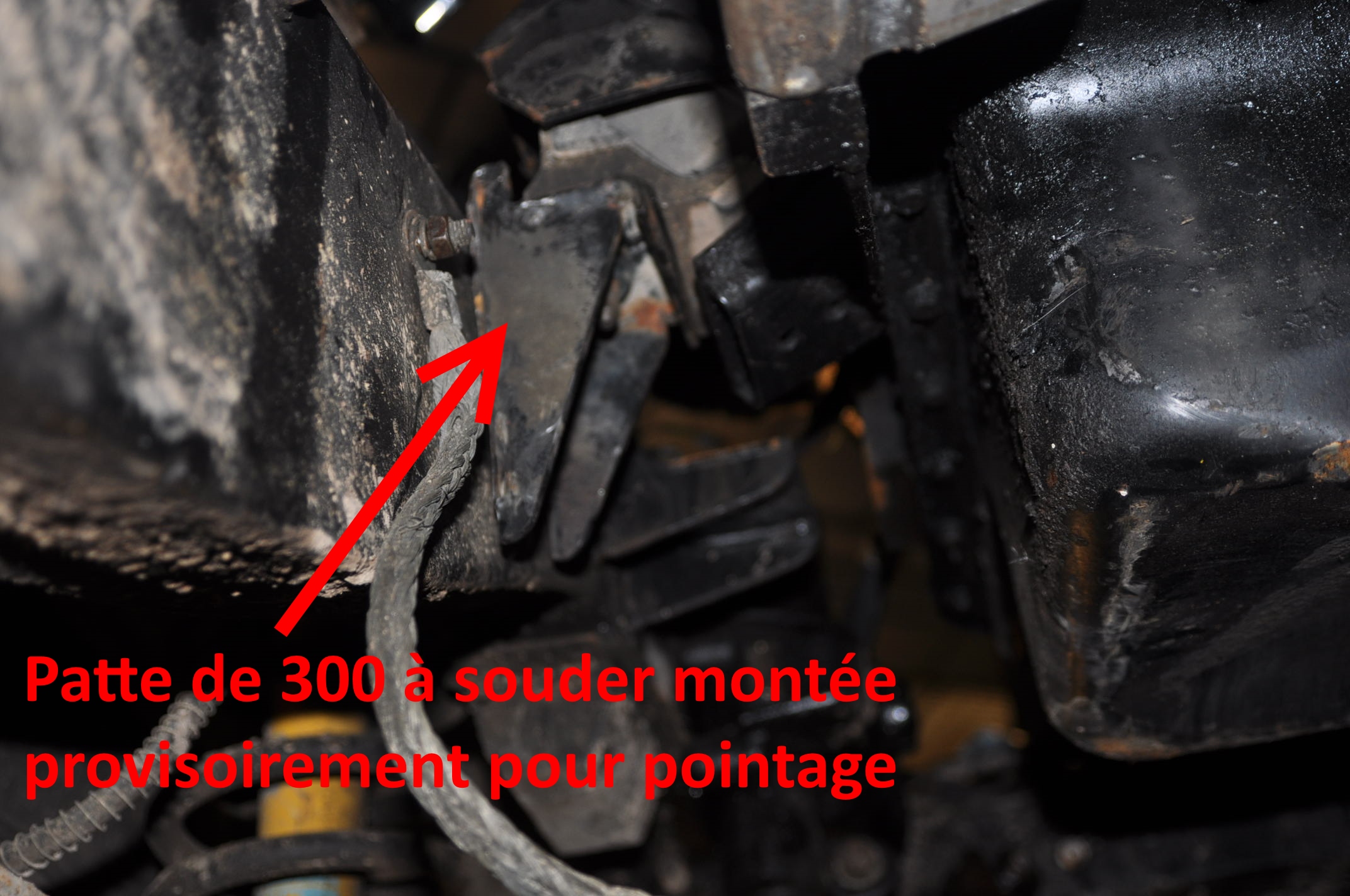 Les supports moteur et les silentblocs moteur de TD5 n'ont rien a voir avec ceux du 300tdi. Photo d'une patte de 300 fixée au bloc juste avant pointage, le bloc lui est fixé à la boite par deux boulons. Support moteur pour 300tdi de fabrication maison : Coté boite, il n'y a rien a faire.