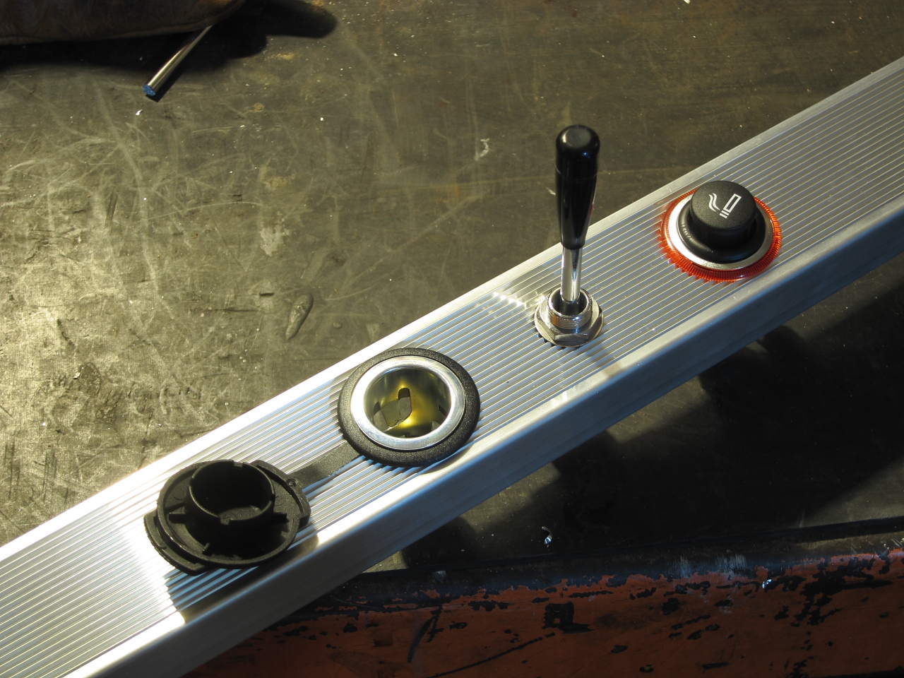 Cela fait très longtemps que j'ai l'idée de faire un vide poche avec prises allume cigare en haut derrière la tête du conducteur, espace non utilisé et à l'abri des infiltrations d'eau habituels dans le vide poche d'origine.