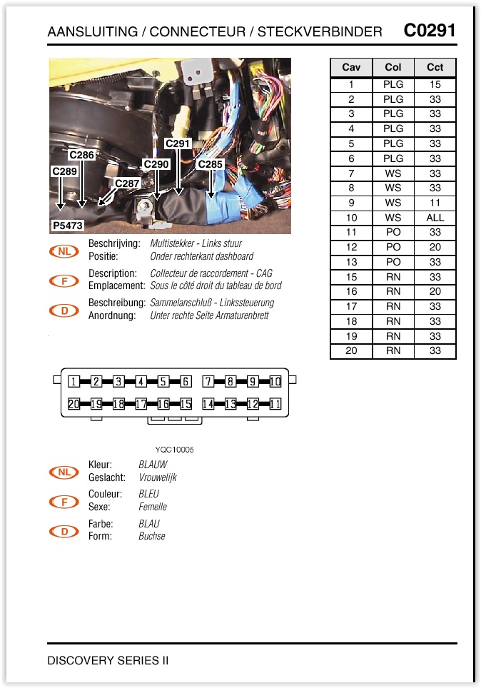 Les portes AVD, ARD, ARG, Coffre arrivent regroupées sur un seul connecteur C0291.