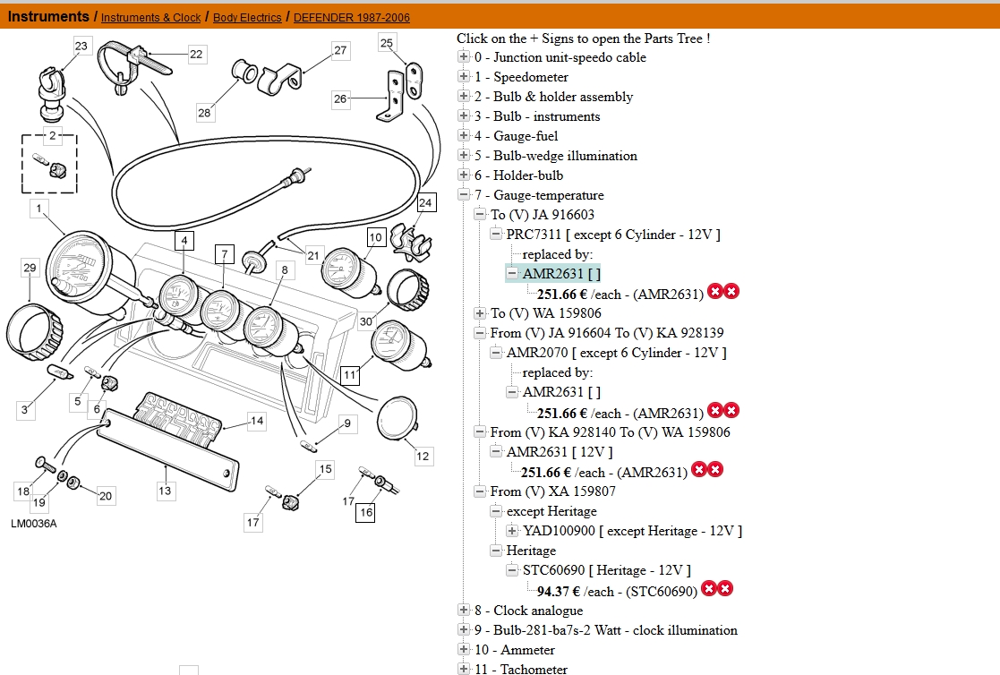 Oui, il s'agit bien de la pompe à eau. Pour les monomètres de température, c'est tous les mêmes du premier 110 de 83, jusqu'au dernier 300tdi en 98, après c'est leur système de fixation qui change sur le TD5 mais électriquement OK.