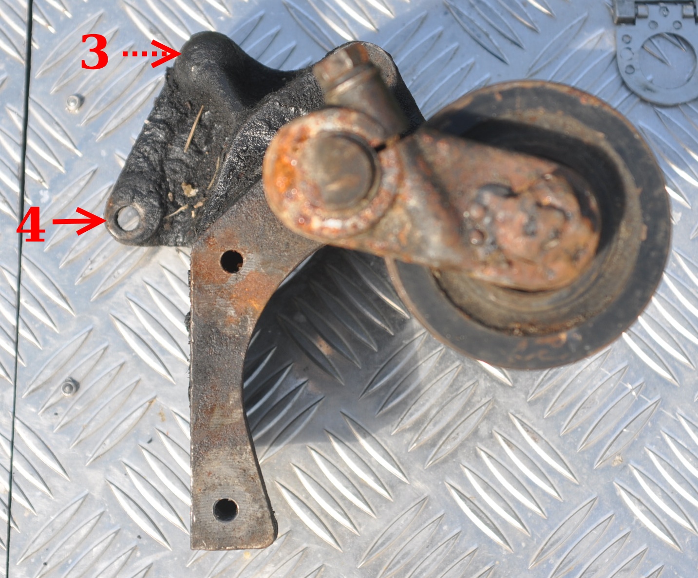 Ensuite, il u a deux système de tension possible, soit par galet tendeur, soit a l'aide de la plaque de fixation avant comme sur les 200tdi. Donc selon le modèle de la pièce support repéré 2 que tu récupères, la plaque avant sera différente.