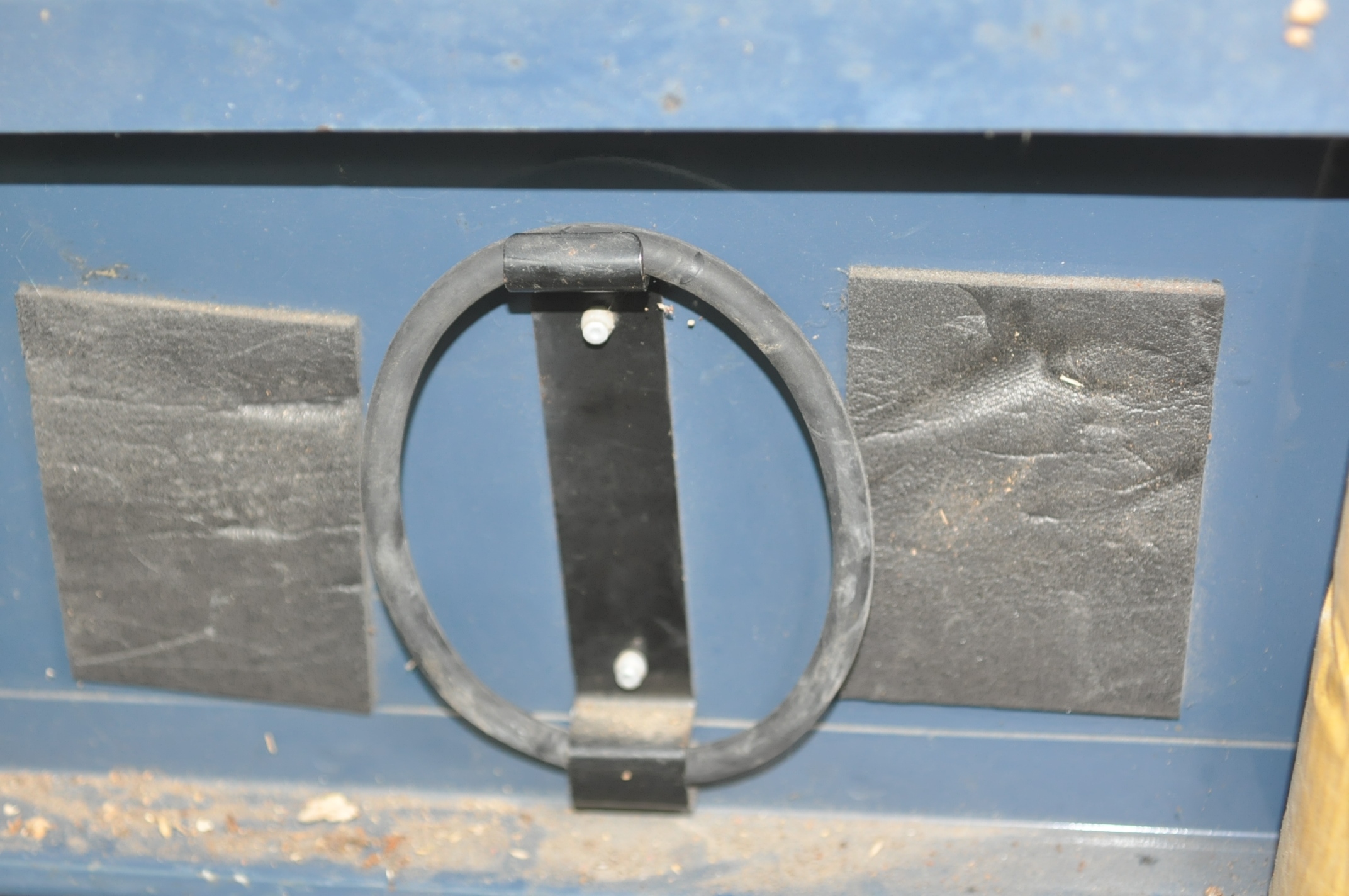 Sur l’arrêt de charge, le cric tient avec une petite sangle boulonnée, seulement j'ai un doute sur le fait que ce soit d'origine.