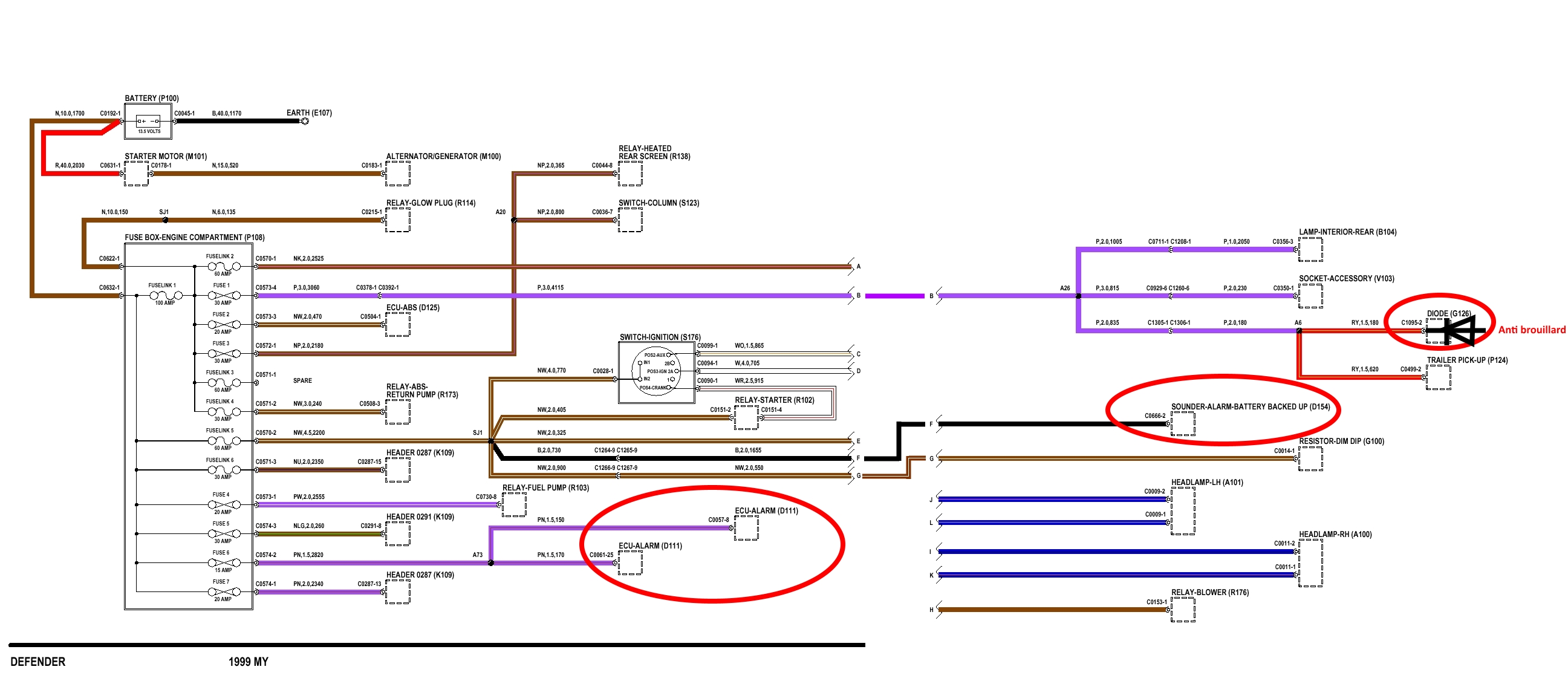 schéma, car il est impératif de résoudre le problème du fusible de 100 A avant de continuer.