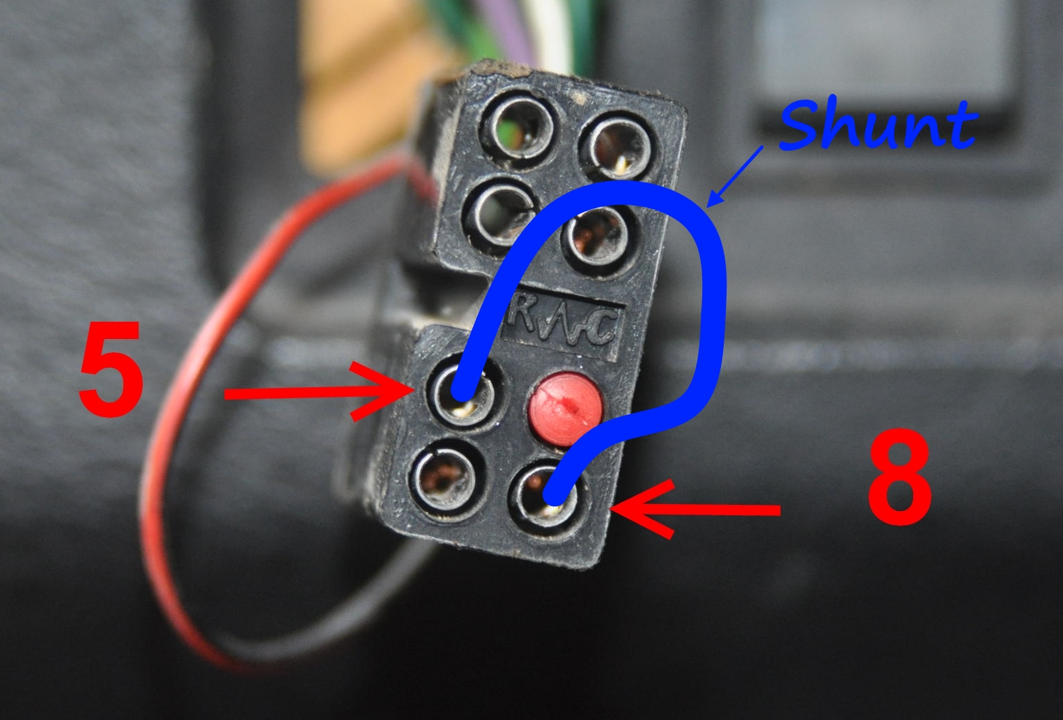 Ensuite, tu places sur le support du bouton, un fil qui sert de shunt, simulant la liaison que normalement fait le bouton de warning et dont les contacts peuvent-être oxydés à l’intérieur. et faire un essais avec la centrale Wipac, si les clignotants fonctionnent correctement, alors c'est le bouton de warning qui est en défaut.