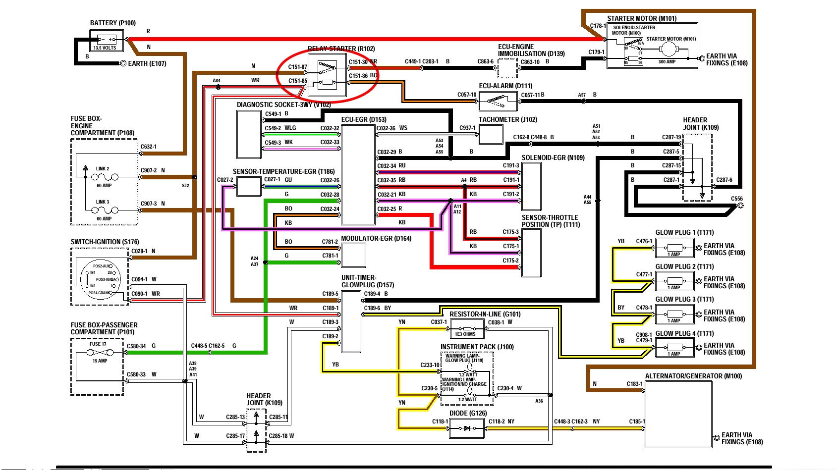 Est ce que tu as ce relais? Car si ton land n'est pas équipé de l'alarme avec l'immobilisateur, alors je ne pense pas que ce soit le cas.-2- Sauf erreur de ma part, et toujours au regard du schémas ci dessus, ce branchement en direct squeeze du coup, au moins pour partie, le relais de démarreur "R102"