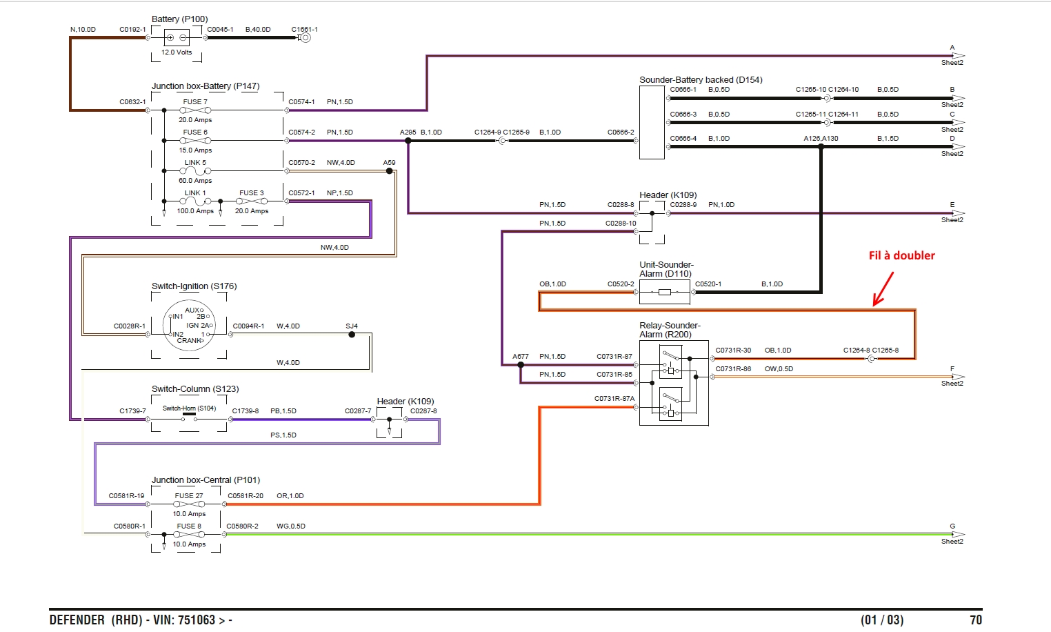 Rien de plus simple que d'ouvrir un capot de def en passant les mains au travers de la calandre, en tirant directement sur la gaine du câble d'ouverture du capot moteur... de se précipité avec une pince coupante sur le bon fil et de le couper. Allez en prenant mon temps moins de deux secondes, avec un complice averti, moins d'une seconde. Que faire, deux choses dans l'immédiat, doubler ce fil orange liseré noir, en partant du relais jusqu’à la sirène en direct, comme ça même si le connecteur est débranché variante (plus longue) que le voleur peut choisir si il n'a pas de pince coupante, cela sonnera quand même. Deuxième chose, passer le câble d’ouverture du capot dans un tube, ou lui faire prendre un trajet inaccessible en passant simplement les mains à travers la calandre.