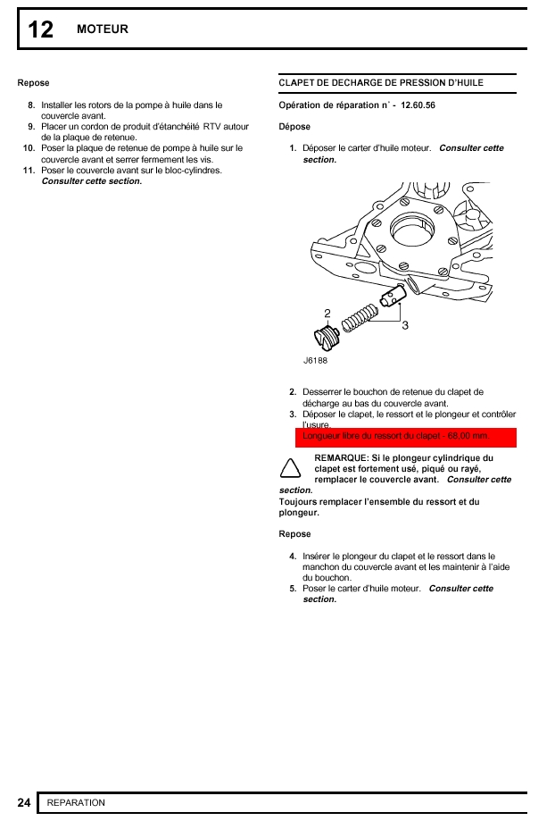 Tant que tu y es, contrôle aussi la longueur du ressort du clapet de décharge de la pompe à huile. Vois un vieux, un neuf