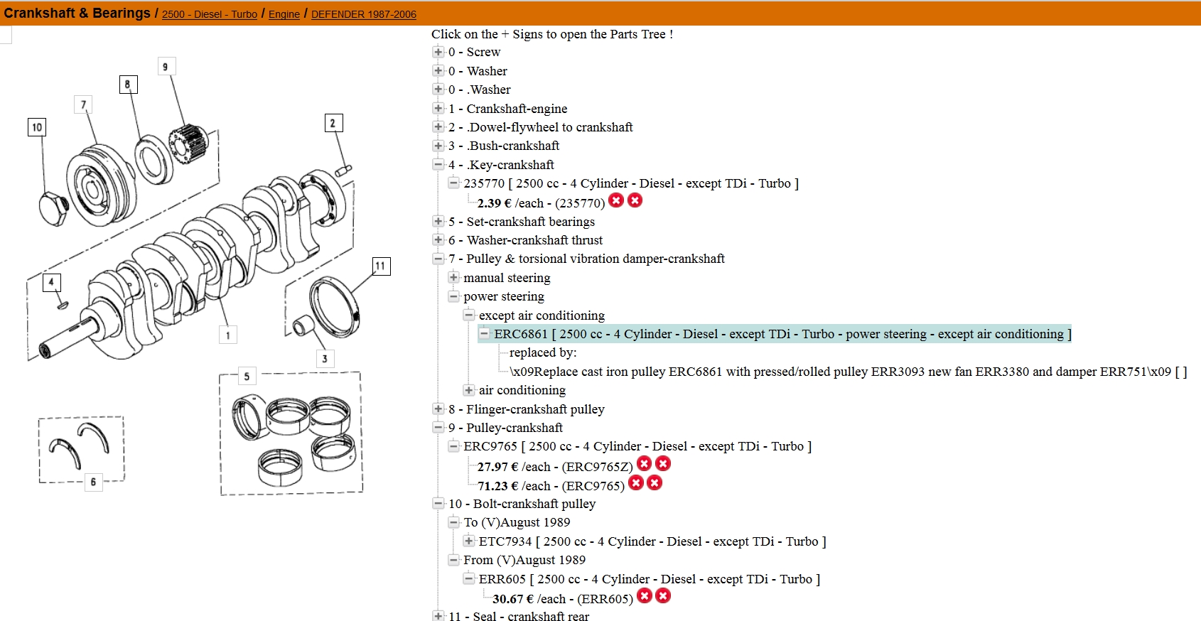 Donc maintenant deux référence, au lieu de ERC6861 il faut: ERR751= masse fonte (55,00€); ERR3093= double poulie tôle (55,67€).