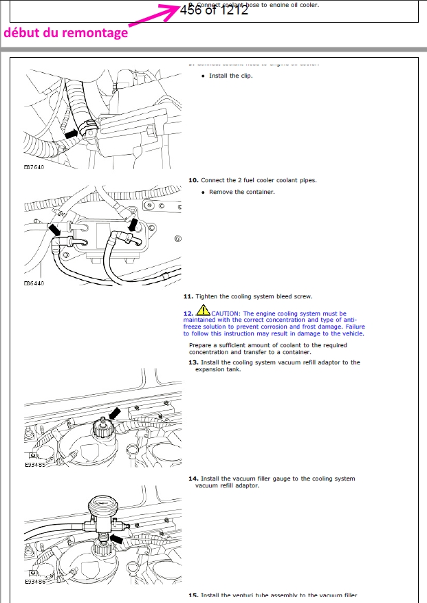 1) Apparemment le système se remplie à l'aide d'un bouchon spécial, placé sur le vase d’extension, sur lequel on raccorde, l'air comprimé, pour créer une aspiration par un système venturi. Mais je préfère vous laisser juger de la procédure par vous même