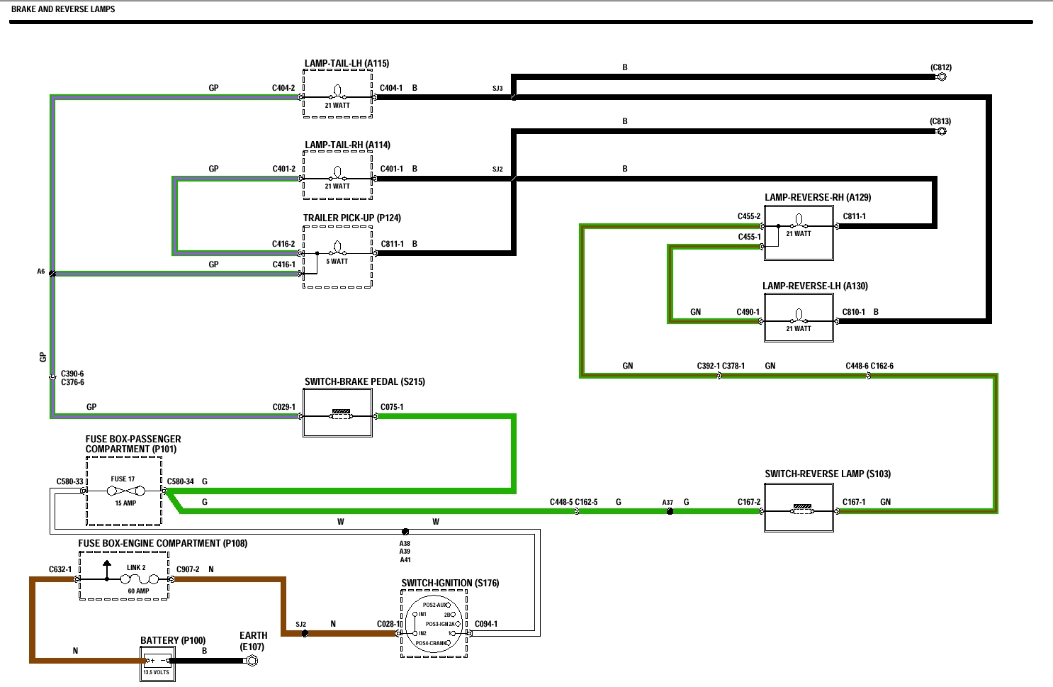 A noter, qu'il n'est pas rare d'avoir des problèmes de feu recul simultanément avec les feux stop, car ils sont sur le même fusible d'une part et d'autre part le faisceau électrique passe en dessous le long de la cloche de boite, sur laquelle il s'abime par frottement provoquant coupure ou sapin noel ou fusible 17 qui saute à chaque fois que l'on passe la marche arrière par exemple, ce qui éliminera les feux stop. On peut distinguer sur la photo le fil vert.