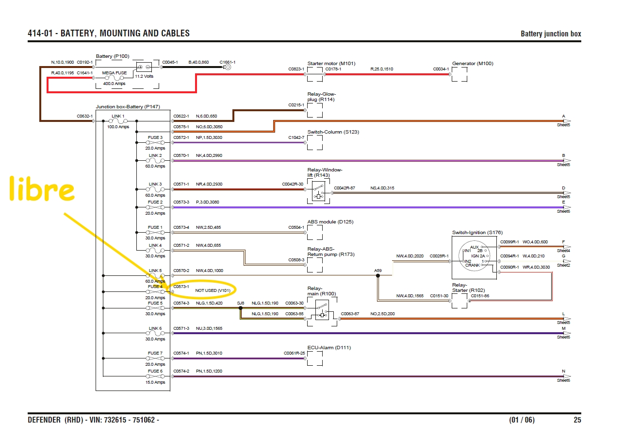 Def 110 SW TD5 de 2006 : Où trouver un plus après contact ? Y en a-t-il un dans le moteur ?