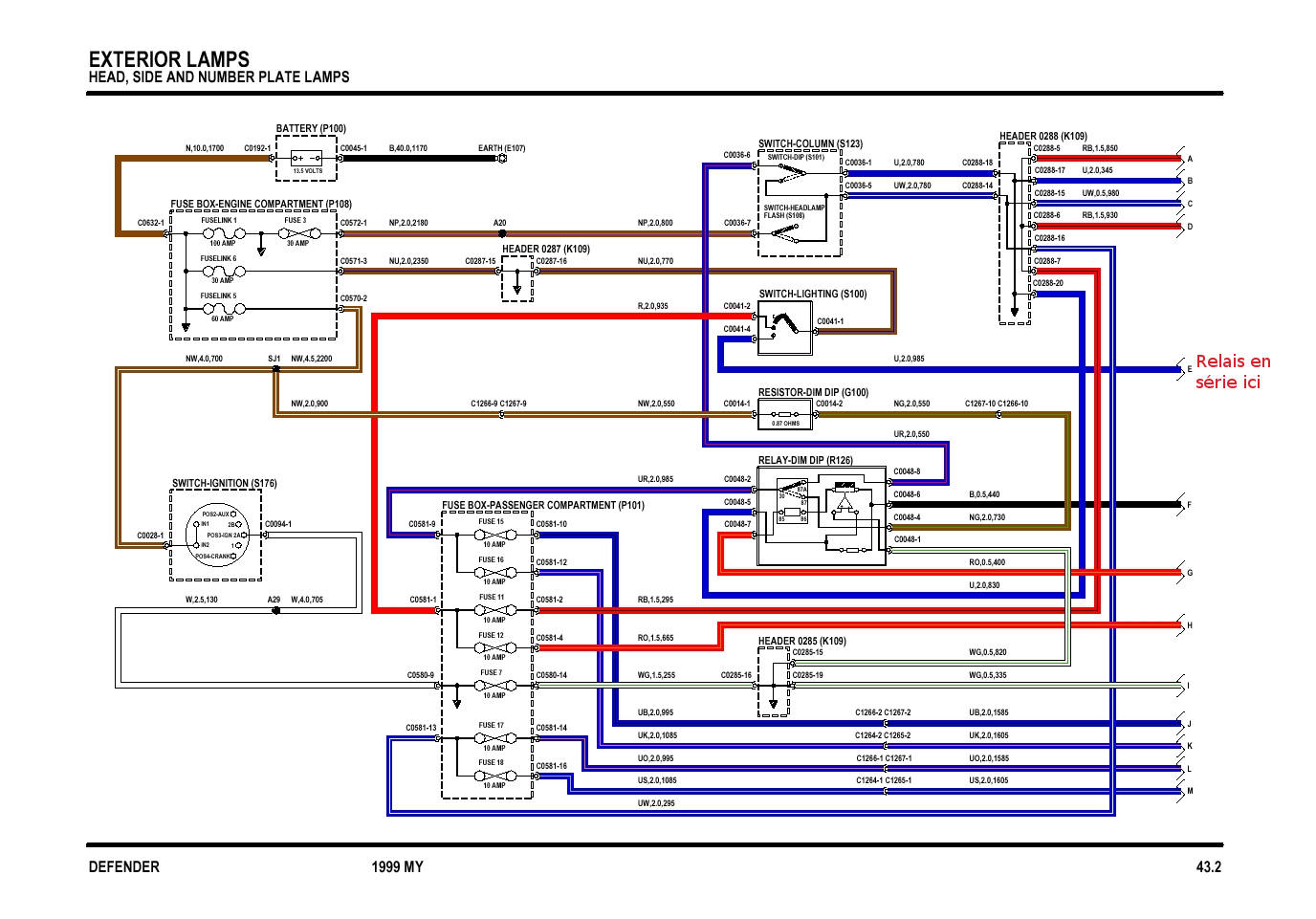 C'est sûr, et en plus tu inaugureras un nouveau concept culinaire avec la salade flambée. :mrgreen: :wink: Sinon, il faut te servir du fil bleu pour commander la bobine d'un relais, qui lui mettra en contact un fil de puissance avec un fusible spécifique vers le fil bleu coté faisceau vers le commodo. Avec un schéma, c'est plus simple, le dim-dip relais est supprimé pour plus de clarté car c'est une spécificité des land anglais, et le schéma habituellement en deux parties est réuni en une seule.