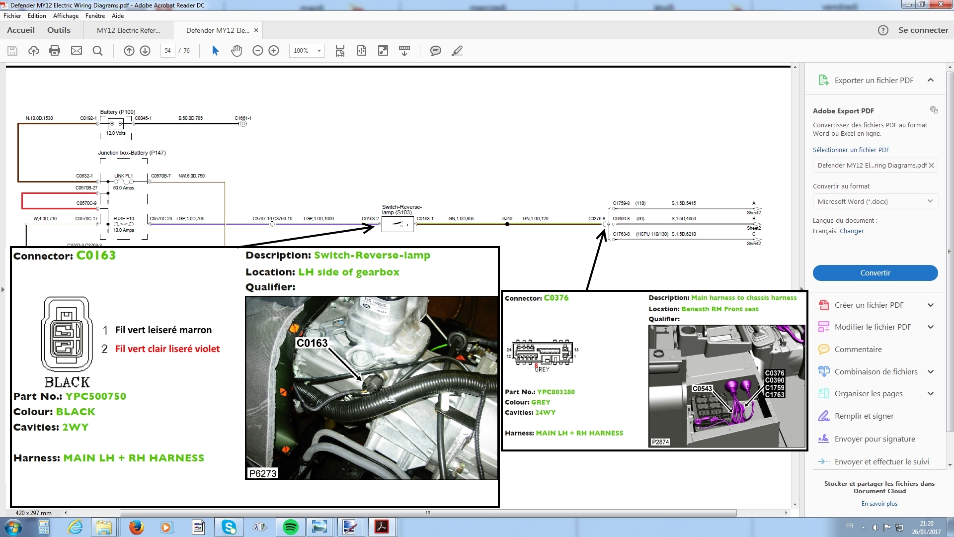 Le capteur est sur le haut coté gauche des boites pas très loin des leviers, mais tu peux retrouver l'information sous le siège passager, ce qui t'évite de tout démonter. Fis toi à la couleur du fil, vert liseré marron ( GN ) broche 8 du connecteur C0376.