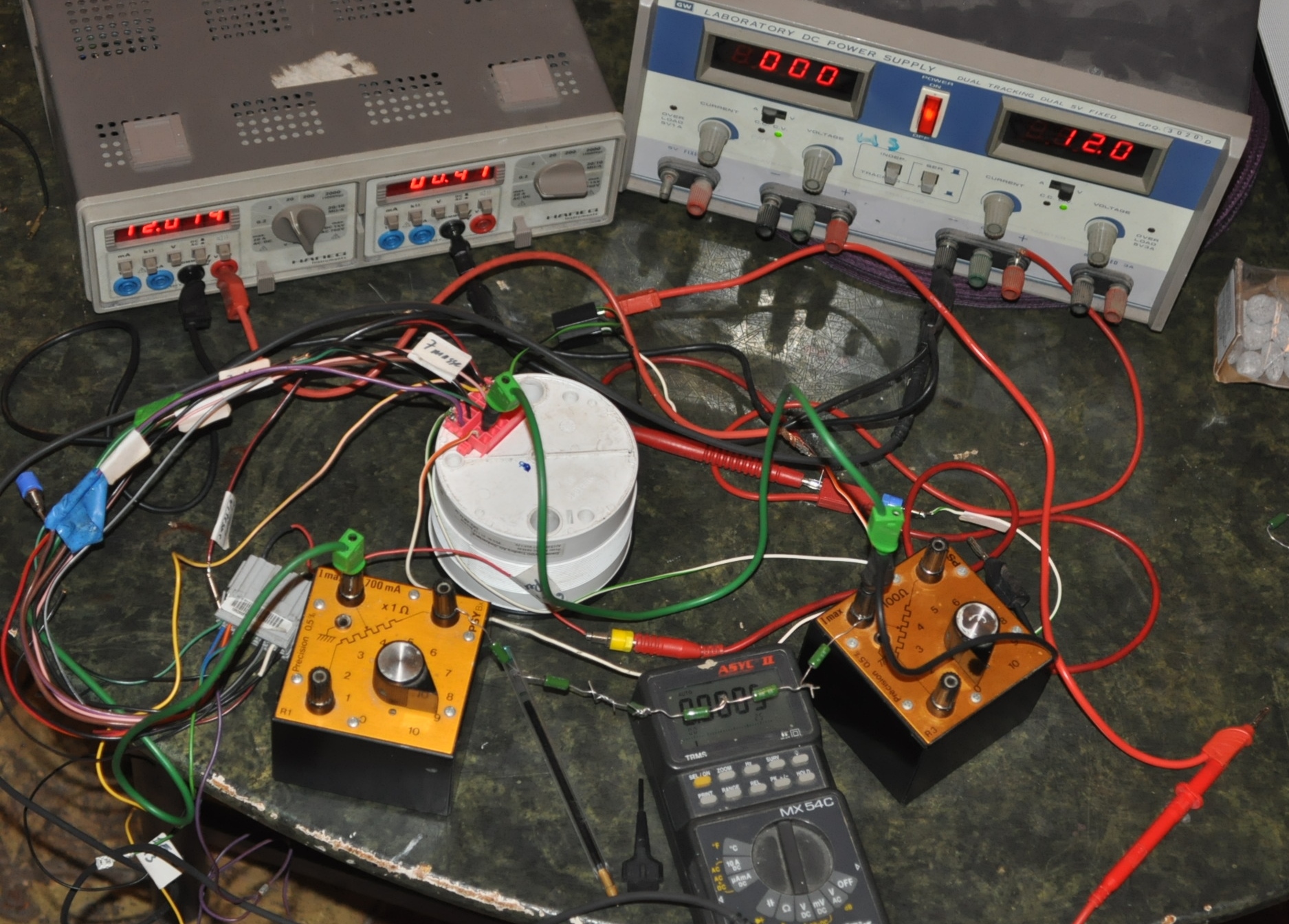 Simple si on reprend le schéma, qui lui nous fait apparaitre une liaison, dans la réalité, les liaisons entre le voyant, le mano, et la jauge passent par le compteur? Quelques mesures simples, en Ohmmètre, nous montrent clairement qu'il ne s'agit pas d'une simple liaison par fil : A suivre...