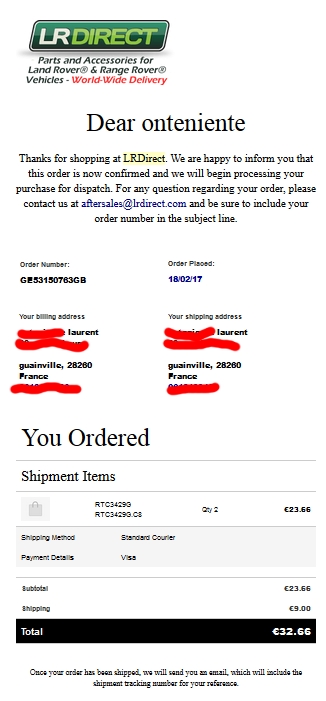 Donc, chez LRDirect, il faudrait prendre le roulement estampillé LandRover à 13.85€ TTC, même si, seulement 1 an de garantie au lieu de 2 ans; ou bien, là encore, faut-il se méfier ? Car là encore, il y a un fort écart de prix même avec le moins chère des roulements SKF. Sachant qu'en gros, les délais de livraison, sont a peu prés identiques, quelques soit la source d'approvisionnement.kebir31 a écrit :Que le gamin qui a programmé le laser de marquage s'est mélangé les pinceaux en ce qui concerne le pays, sur un des deux côtés du premier roulement.