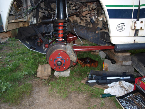 Je remets à jour ce sujet car je suis dans le même cas. J'ai un td4 de 2007 avec une rehausse de 5 cm et des biggore et les suspensions frottent la chapelle à l’avant. J’aimerai savoir comment vous avez résolu ce problème. Merci à tous.