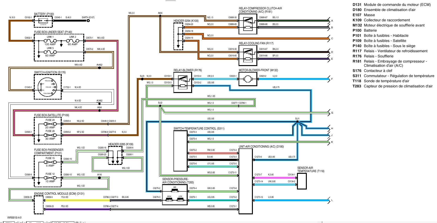 1) 2) Par exemple, le collecteur de raccordement ou header C0287 on peut voir les +12V d'alimentation du circuit d'essuie glace sur les broches, 11; 13 et 12 et les masses du circuit de soufflerie, sur les broches 4; 6; 7; et 8 c'est peut-être une piste à creuser. La tête qu'il a ce collecteur de raccordement K109 C0287 situé derrière la console centrale, tout au fond, très très galère à aller chercher, vois ce thème : Veilleuses-codes-phares HS Def 300tdi/td5 pour te faire une idée.