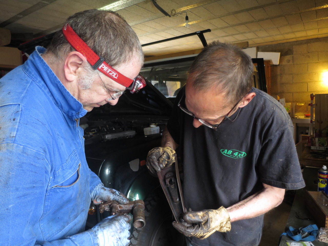 Pour extraire la fourchette de la rotule, il a fallu attaquer le bord du trou de la fourchette avec un marteau et un petit burin pour agrandir un peu le trou afin que la rotule puisse de nouveau passer dans l'autre sens afin d'extraire la fourchette de sont logement.