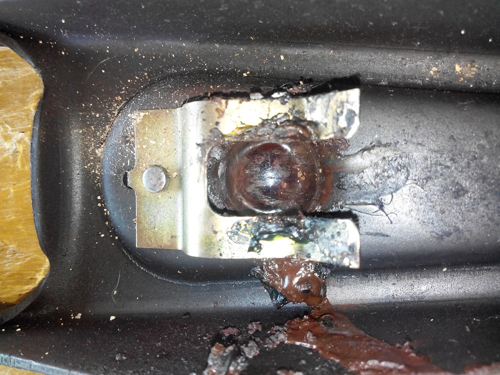 pour le reste un jeu de clefs plates; un jeu de clefs à pipe et des douilles de clef à cliquet ( 7; 8; 10; 13; 15; 17; 19 longue pour les écrous des silentblocs ) 2 rallonges longues; un tournevis plat et un cruciforme standard; une pince à bec; un démonte pneu, un marteau un pointeau; un cric 4 bastaings). On a utiliser un petit burin genre lame de tournevis plat sans manche, pour désincarcérer la rotule de la fourchette. Le 9/16 peut être remplacé par du 14 usé.