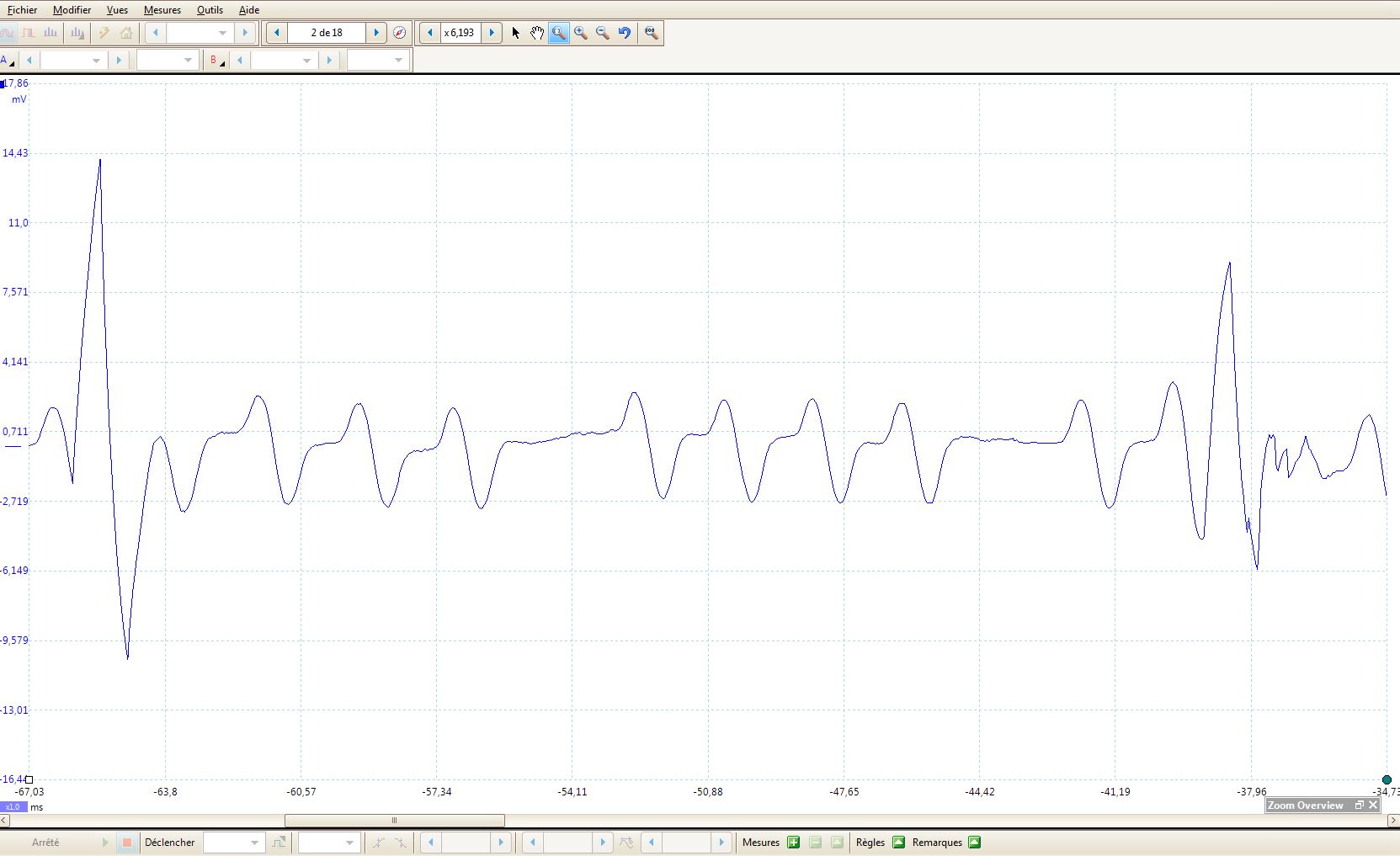 Les gars : à tout vous dire, depuis le début, je cherche comment procéder pour réaliser ce que je fais habituellement à l'oscilloscope...