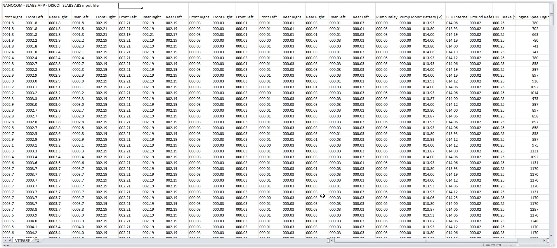 D'après le simulateur et la doc que tu viens de poster, on peut récupérer le niveau de tension aux quatre capteurs de roues via l'OBD. Si le Nano le permet, peux-tu refaire la première manip mais cette fois en enregistrant en continu (donc sous forme d'un graphe) les tensions, pas les vitesses de rotation des roues?