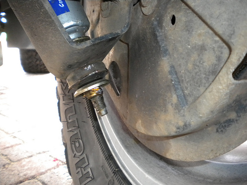 Non, au contraire l'amortisseur est plus long que l'origine. Par ailleurs, les ressorts sont de type +1" et ils sont posés sur une cale alu de +5cm donc globalement une rehausse d'environ 7 cm. Pour le jeu latéral, comme les silentblocs sont dans l'oeil de l'amortisseur, en fait ils jouent bien leur role, ne peuvent pas se "détruire", n'usine pas le support et le débattement obtenu est largement suffisant !colombin a écrit :2/- le système qui équipe le Land de Bisnouk est séduisant mais, l'amortisseur est plus court, et si le jeu axial est bien meilleur, le jeu latéral n'est-il pas un peu bridé ?